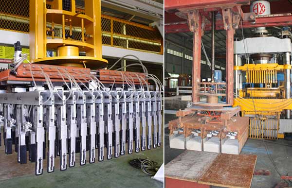 當切坯機(jī)把切好的磚坯(pi)推到分坯闆上(shàng)後,分坯缸伸出(chu)☂️,帶動分坯闆張(zhang)開對磚坯進行(hang)分縫動作,磚坯(pi)分縫完成後升(shēng)降缸下降。當夾(jiá)盤到達預定夾(jia)坯位置後,夾♋盤(pan)夾具工作,夾起(qǐ)磚坯,接着由🈲升(sheng)降缸提開🌐夾盤(pán)至預定高度,分(fen)坯缸伸出張開(kai)磚坯間風道,行(háng)走裝置驅動碼(mǎ)坯機行走至窯(yáo)車正上方,旋轉(zhuan)裝置完成轉向(xiàng)90°,然後開降缸下(xia)降至預定放坯(pi)高度,夾盤夾具(ju)張開把磚坯碼(ma)放在窯車上,碼(mǎ)坯機碼放一層(céng),旋轉一層,形成(cheng)十字🔴交叉,經過(guo)上述動⛱️作循環(huan),即可完成窯車(chē)的全部碼坯過(guo)程。
